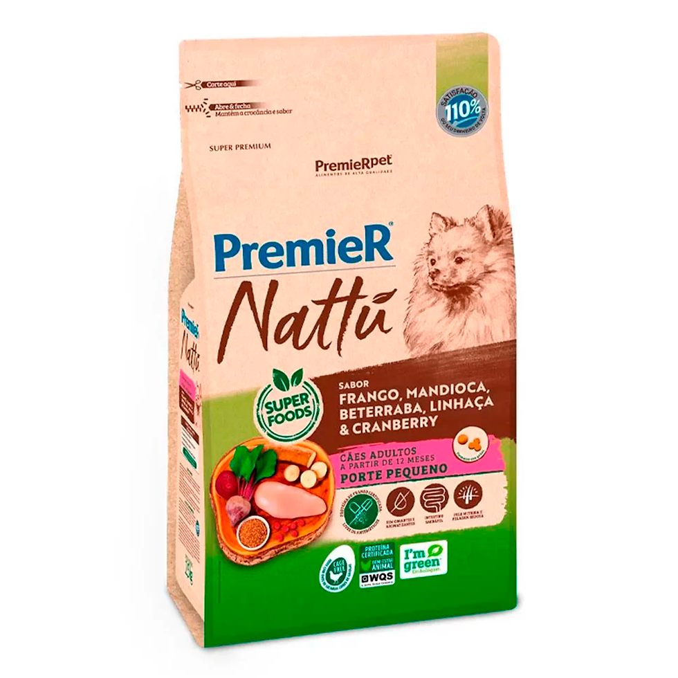 PREMIER NATTU P/ CÃES ADULTOS DE PEQUENO PORTE SABOR MANDIOCA